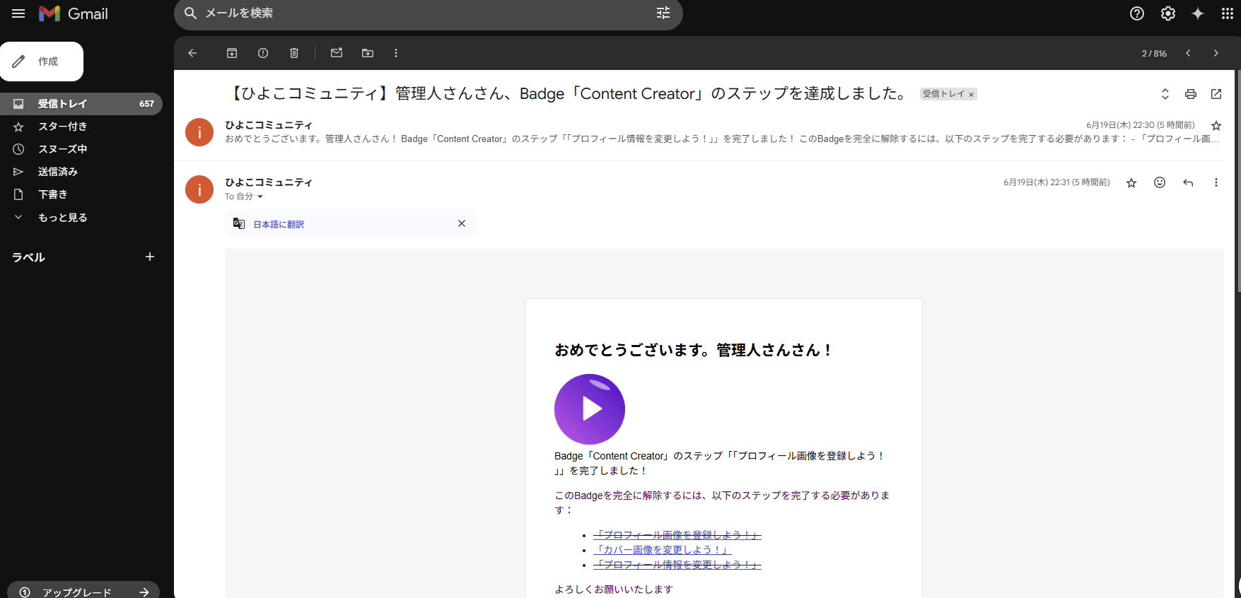 他にもプロフィール情報を整えるとメールが届きます。指示に従って役割を終えると