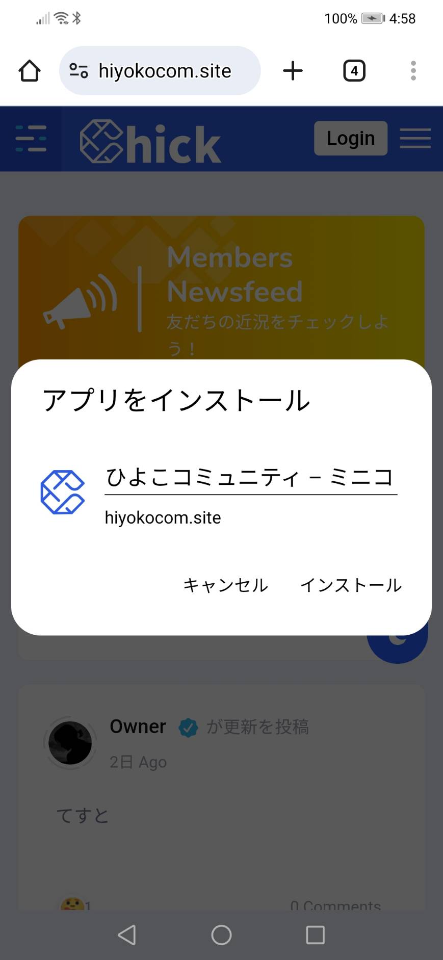 あとは、ログインして近況などを投稿してみてください。メンバーでない方は、メンバー登録してお使いください(*^-^*)